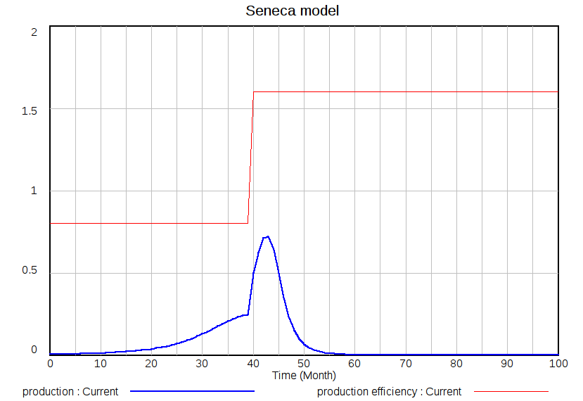 In the first version of my Seneca model, the fast decline of production was interpreted in terms of growing pollution that places an extra burden on the productive system and reduces the amount of resources available for the development of new resources. However, I found that the Seneca behavior is rather robust in these systems and it appears every time people try to "stretch out" a system to force it to produce more and faster than it would naturally do.